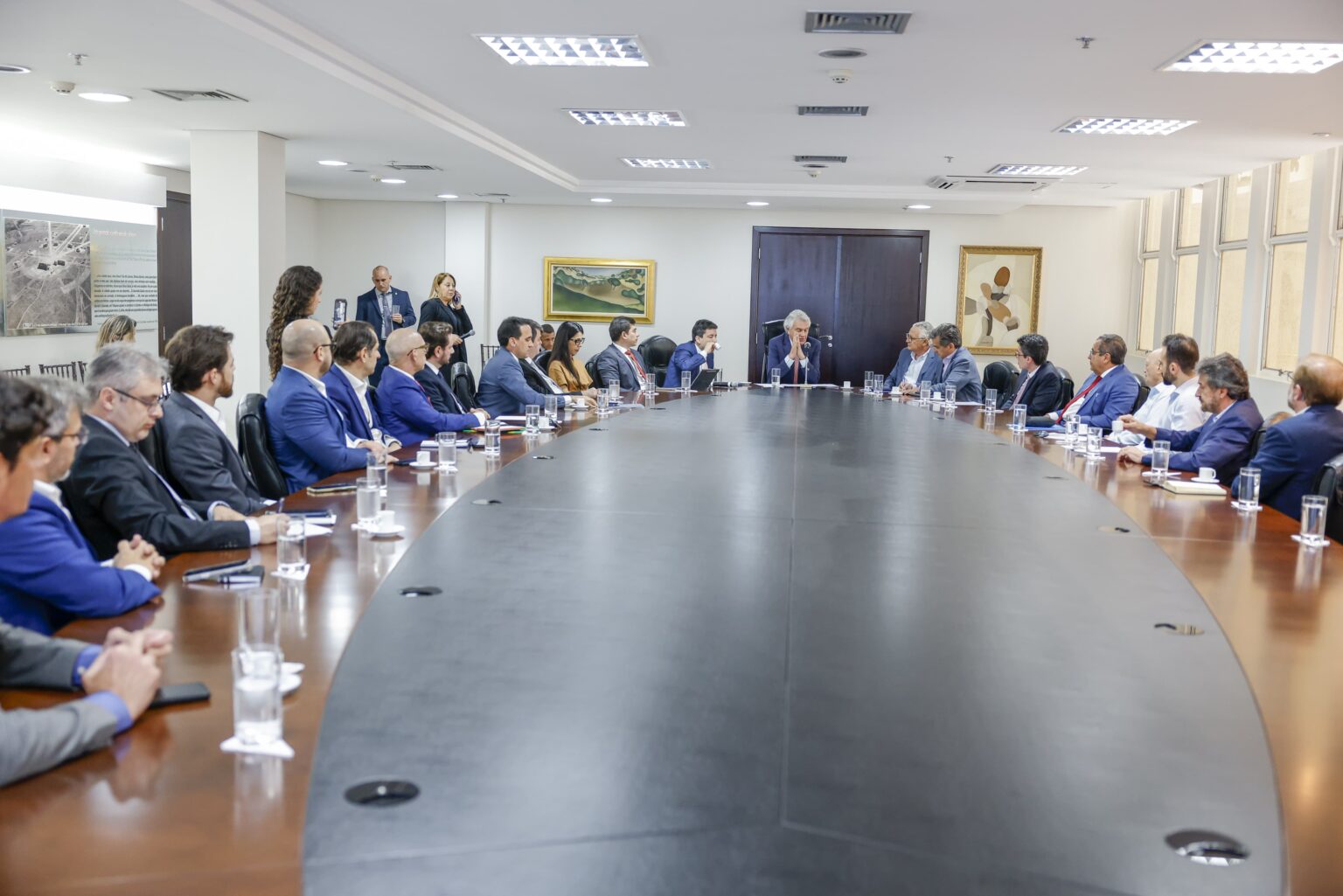 O governador Ronaldo Caiado se reuniu, na tarde desta quarta-feira (23/7), com lideranças da mineração, soja e cítrico para discutir soluções alternativas para proteger a economia goiana dos impactos da tarifa de 50% sobre os produtos brasileiros exportados para os Estados Unidos da América (EUA). A medida foi anunciada pelo presidente americano Donald Trump e tem previsão de entrar em vigor a partir de 1º de agosto. Essa foi a segunda reunião realizada pelo chefe do Executivo goiano, que pela manhã, recebeu os setores da saúde e do agronegócio.