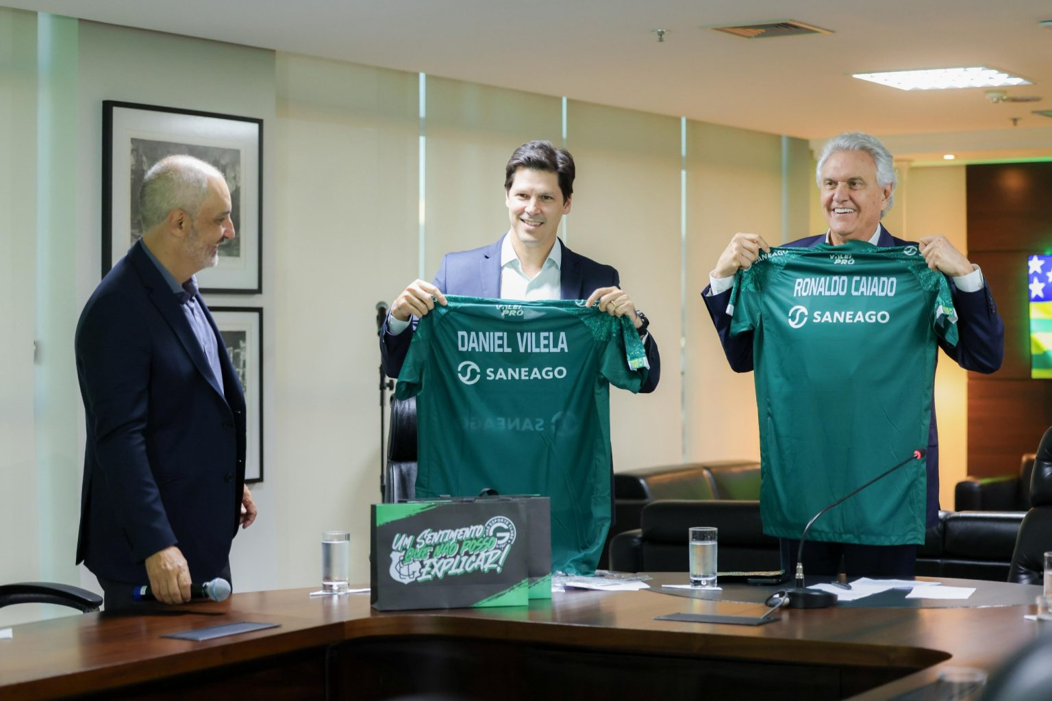 O governador Ronaldo Caiado reforçou nesta segunda-feira (7/7) o compromisso do Governo de Goiás com o fortalecimento do esporte no estado ao anunciar a renovação do patrocínio de R$ 1,9 milhão ao Goiás Vôlei. O repasse será pela Saneago, por meio da Lei de Incentivo ao Esporte. Na solenidade, Caiado destacou a importância de investir em iniciativas que promovem inclusão, cidadania, orgulho local e, acima de tudo, que possam ajudar a revelar novos atletas, já que o clube vai desenvolver ações para divulgar a modalidade esportiva.