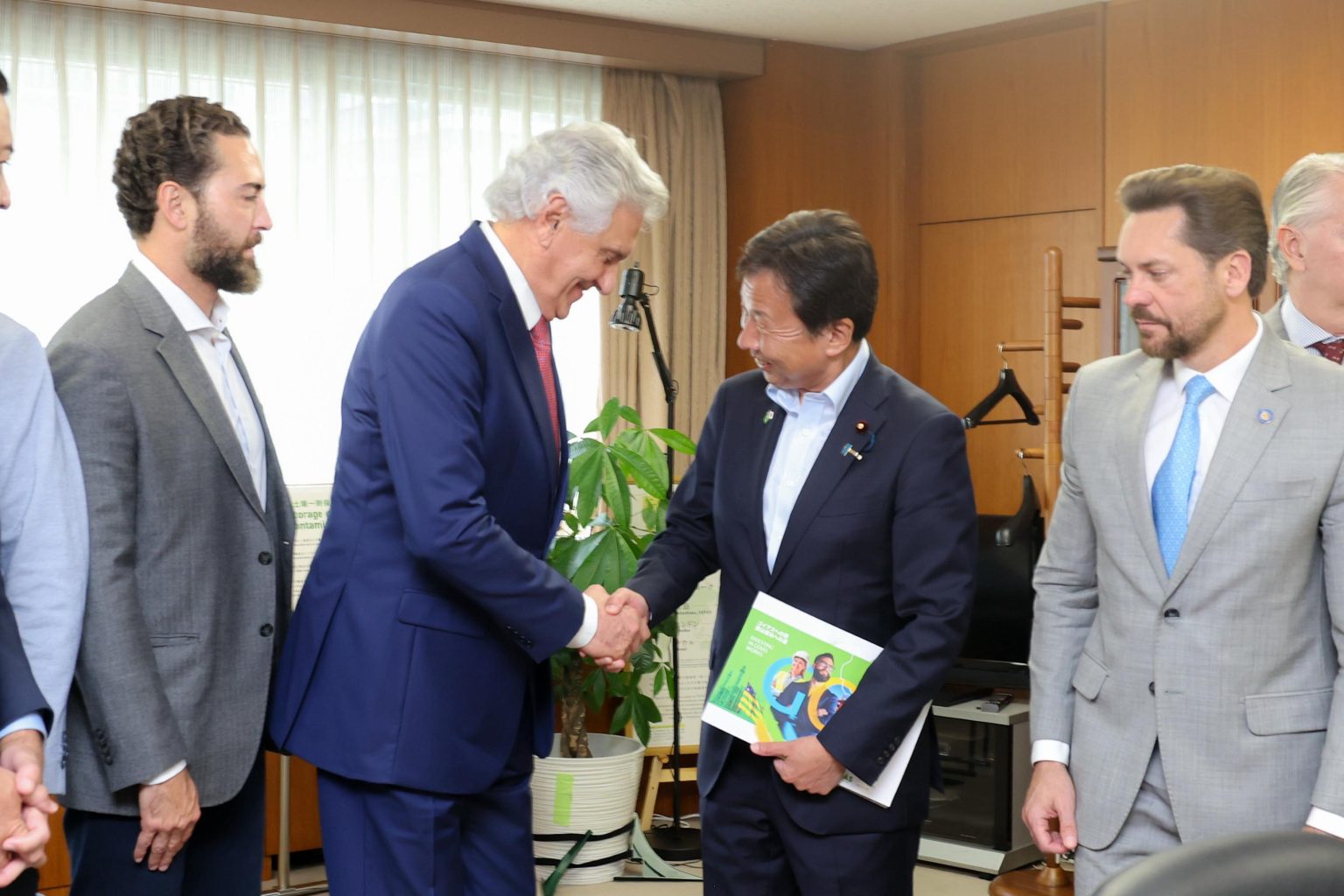 Ainda na segunda-feira, Caiado se reuniu com a ministra dos Negócios Estrangeiros do Japão, Arfiya Eri, para tratar da abertura do mercado japonês à carne bovina goiana. O governador destacou que o estado é reconhecido como livre de febre aftosa sem vacinação pela Organização Mundial de Saúde Animal (OMSA), condição essencial para exportações.