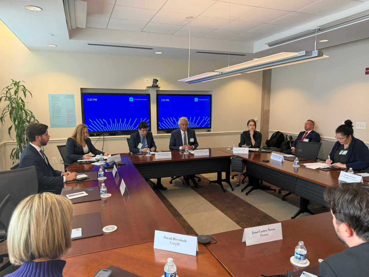 Antes da reunião com o vice-secretário de Estado americano, Christopher Landau, que ocorreu a portas fechadas, o governador Ronaldo Caiado participou de reunião na Câmara de Comércio dos Estados Unidos (U.S. Chamber of Commerce)