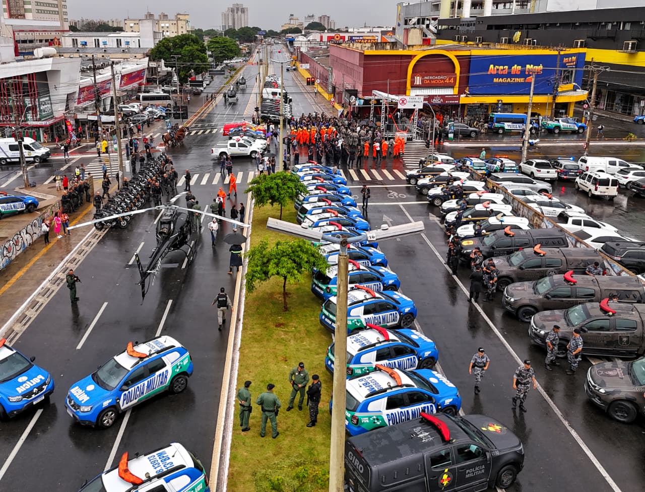 Caiado anunciou investimento de R$ 81,6 milhões em segurança pública para realização da ação. O recurso contempla três frentes prioritárias: valorização do efetivo, com pagamento de serviço extraordinário; modernização da frota aérea, inclusive com entrega de um helicóptero; e aquisição de equipamentos de contenção menos letal. “É uma realidade que nunca se viu em Goiás. Toda essa estrutura de armamentos, coletes, viaturas e helicópteros dando um suporte para o combate à criminalidade”, disse o governador. A meta, reforçou, é estar “sempre um passo à frente do crime” para neutralizá-lo.