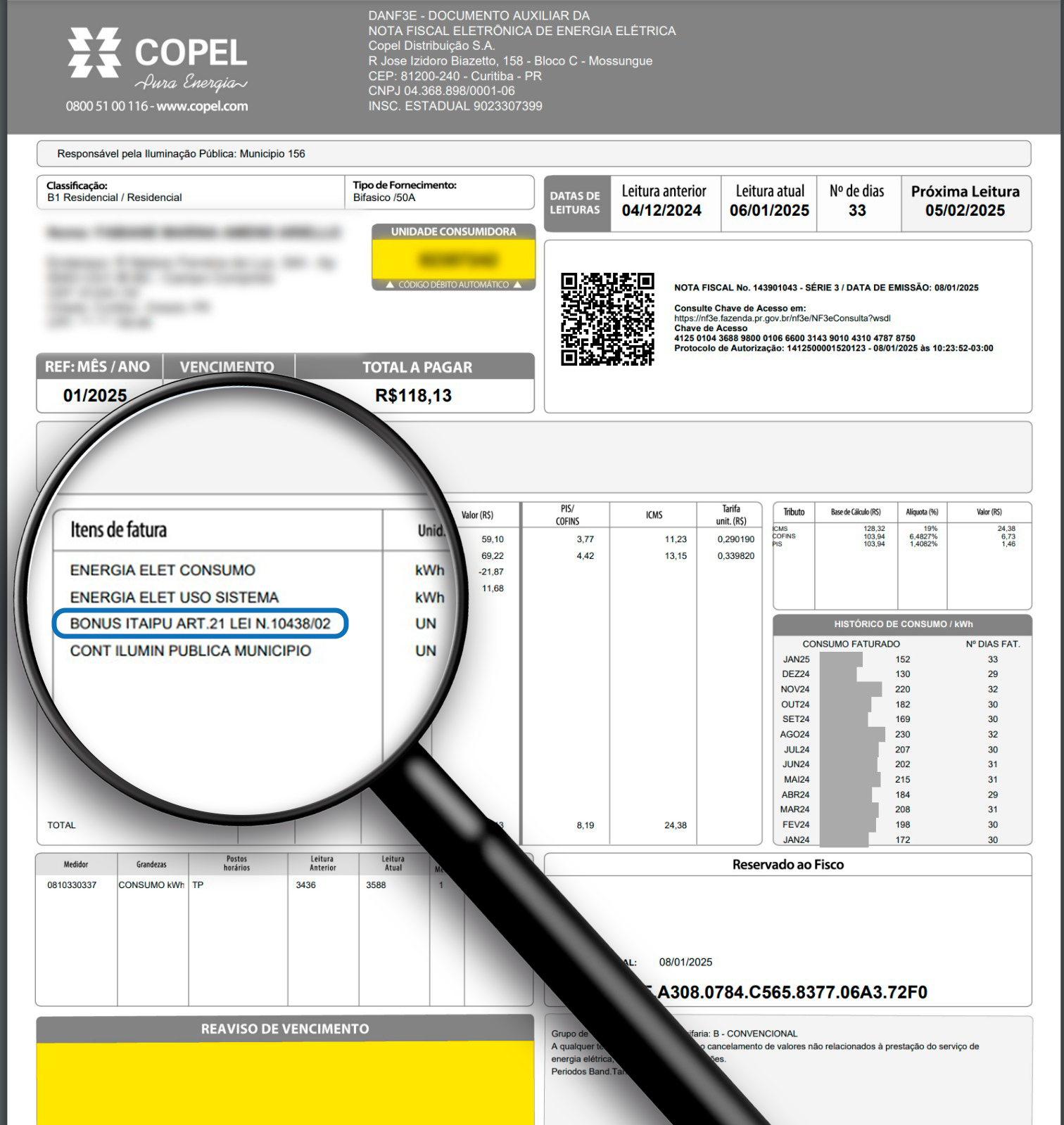 Percebeu? Cidadãos recebem “bônus Itaipu” na conta de energia em Janeiro