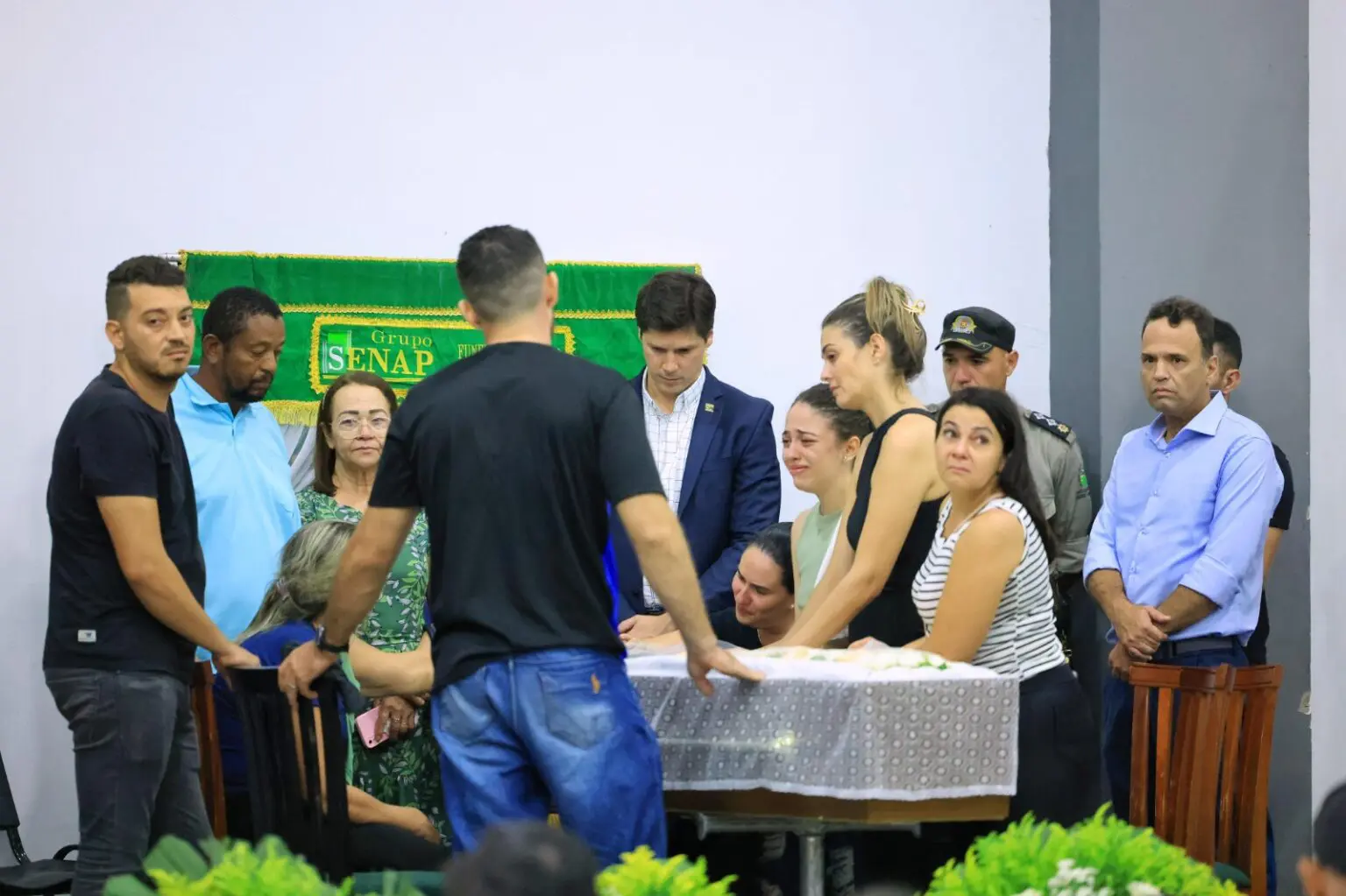 O governador em exercício de Goiás, Daniel Vilela, prestou solidariedade durante o velório nesta terça-feira (11/02), de cabo da Polícia Militar Paulo Vitor Coelho Campos. O policial perdeu a vida em uma operação na zona rural de Niquelândia, no Norte do estado, ao enfrentar um criminoso de alta periculosidade.
