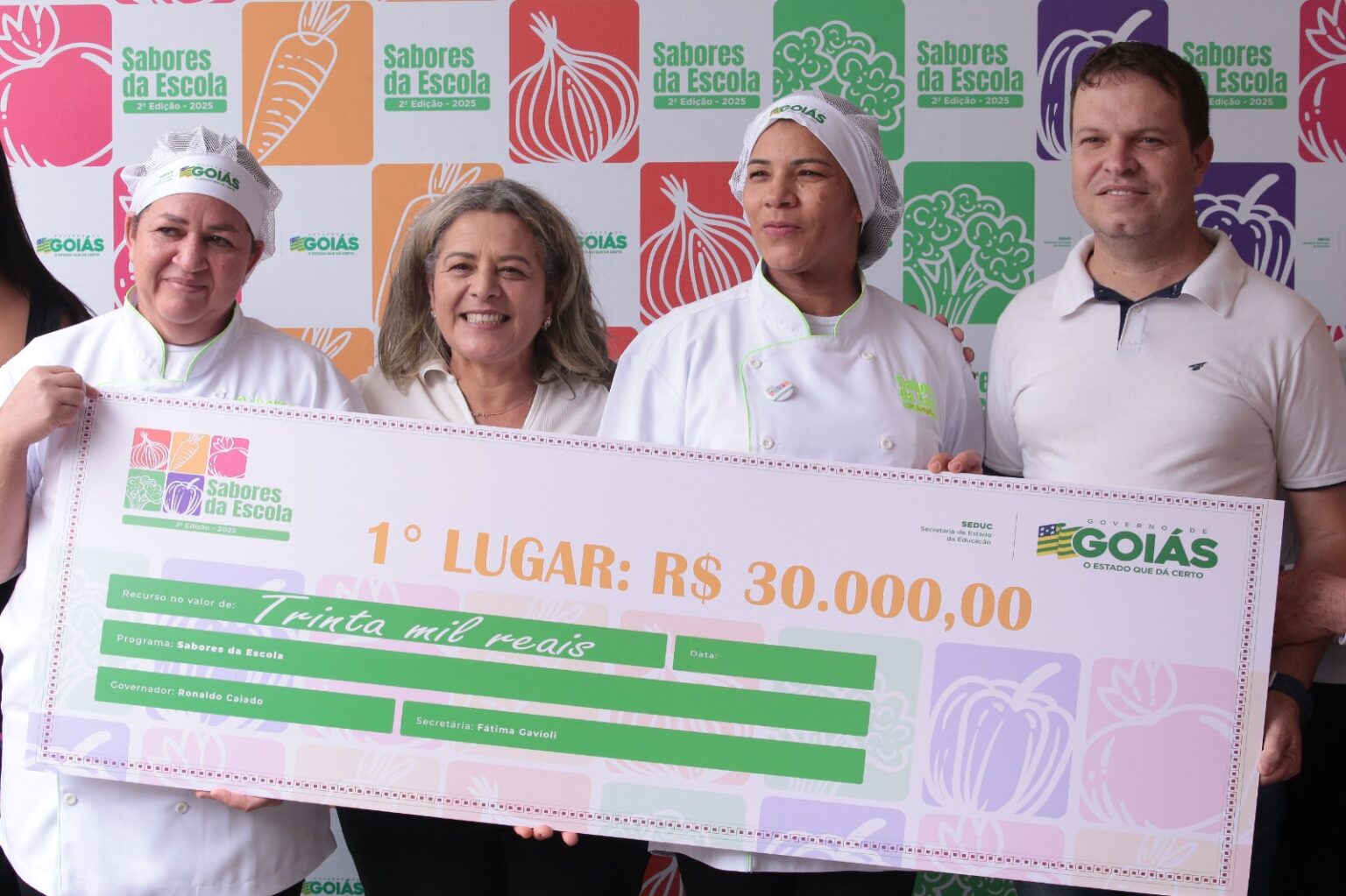 A secretária da Educação, Fátima Gavioli, comandou a entrega dos prêmios. As primeiras colocadas receberam R$ 30 mil. “A ideia desse concurso é abrir espaço para que o trabalho de nossas merendeiras seja reconhecido e valorizado. O Governo de Goiás mais do que triplicou os recursos destinados à alimentação escolar, mas é a dedicação, o compromisso e a responsabilidade dessas profissionais que têm feito a diferença lá na outra ponta”, destacou.